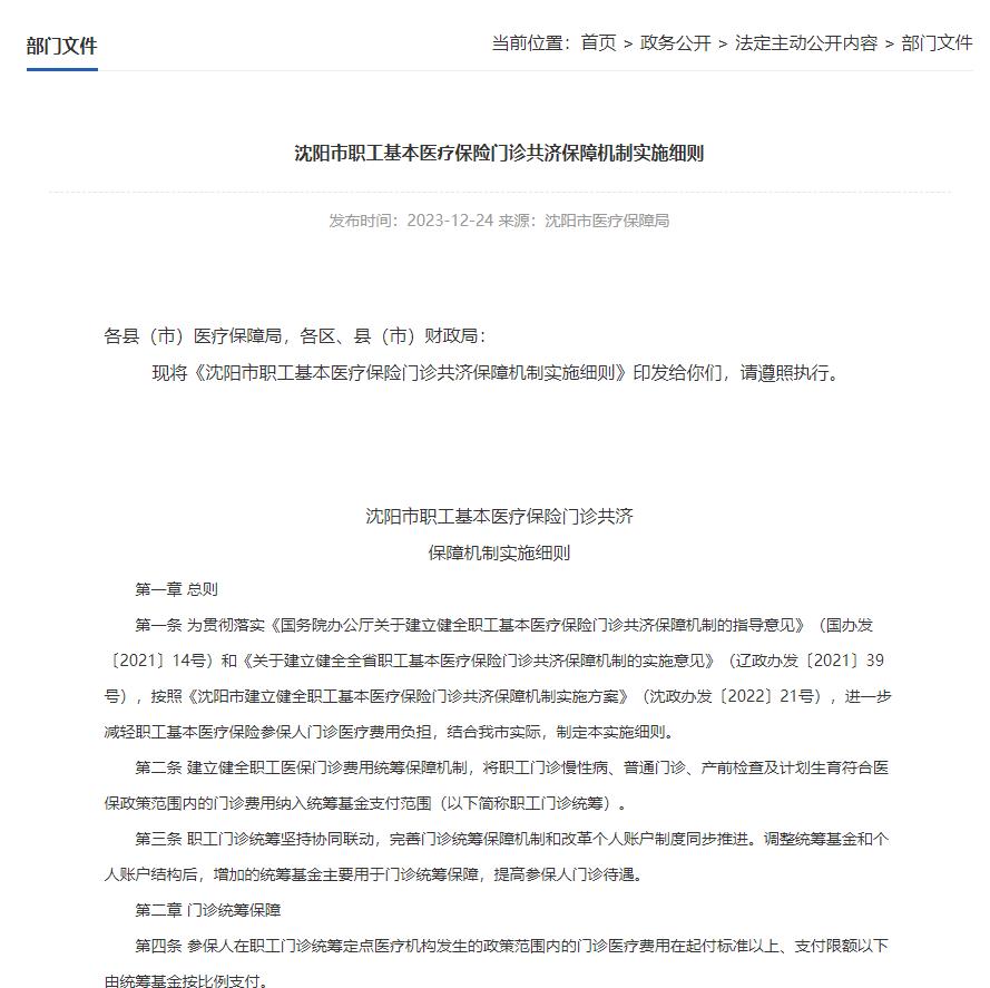 沈陽(yáng)市職工基本醫(yī)療保險(xiǎn)門(mén)診共濟(jì)保障機(jī)制實(shí)施細(xì)則